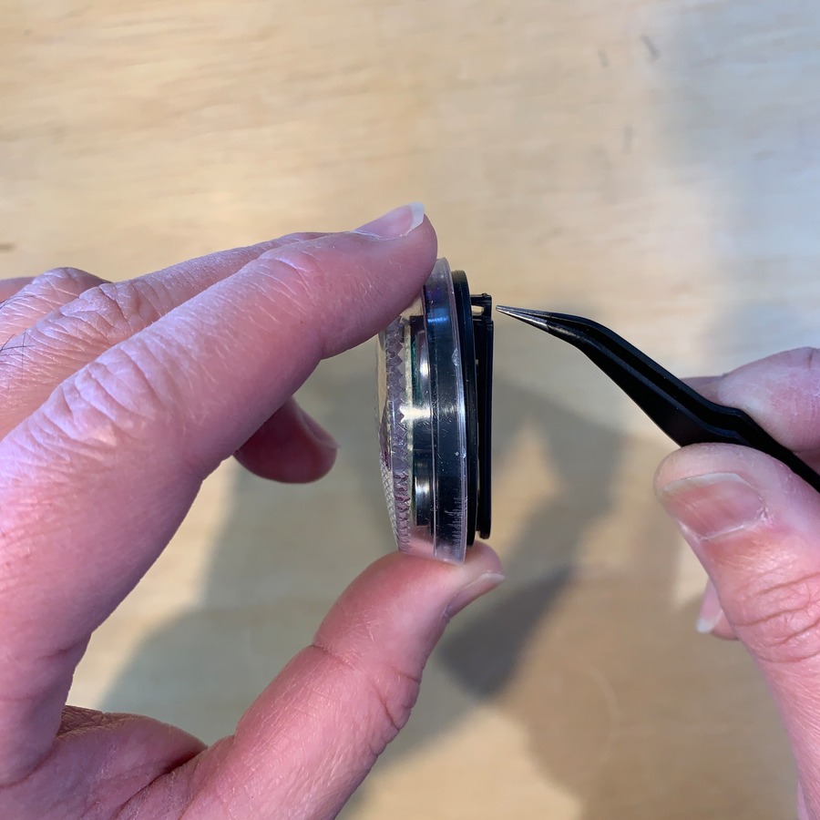 今回はピンセット先端を入れて手前に引きます(次の画像のように)
