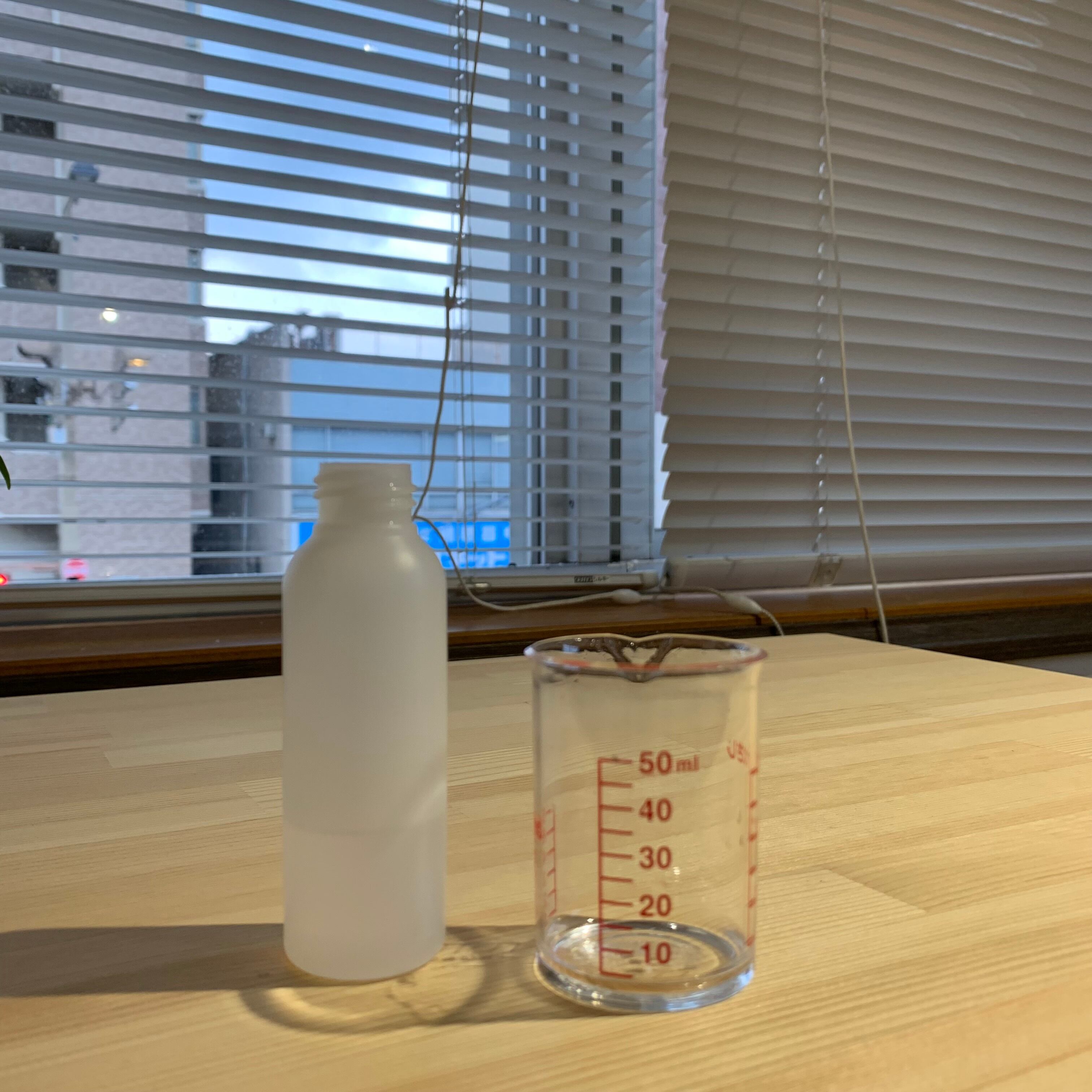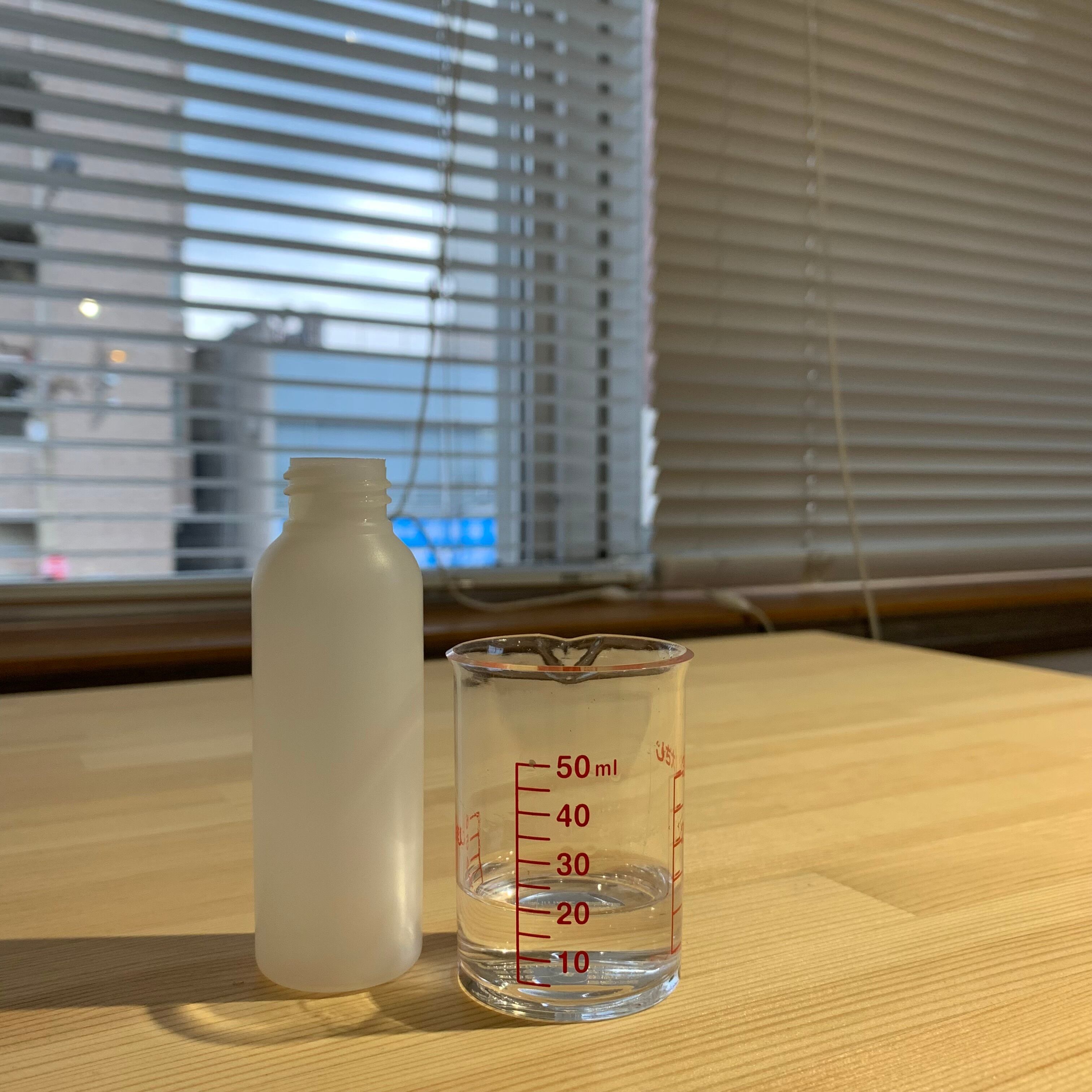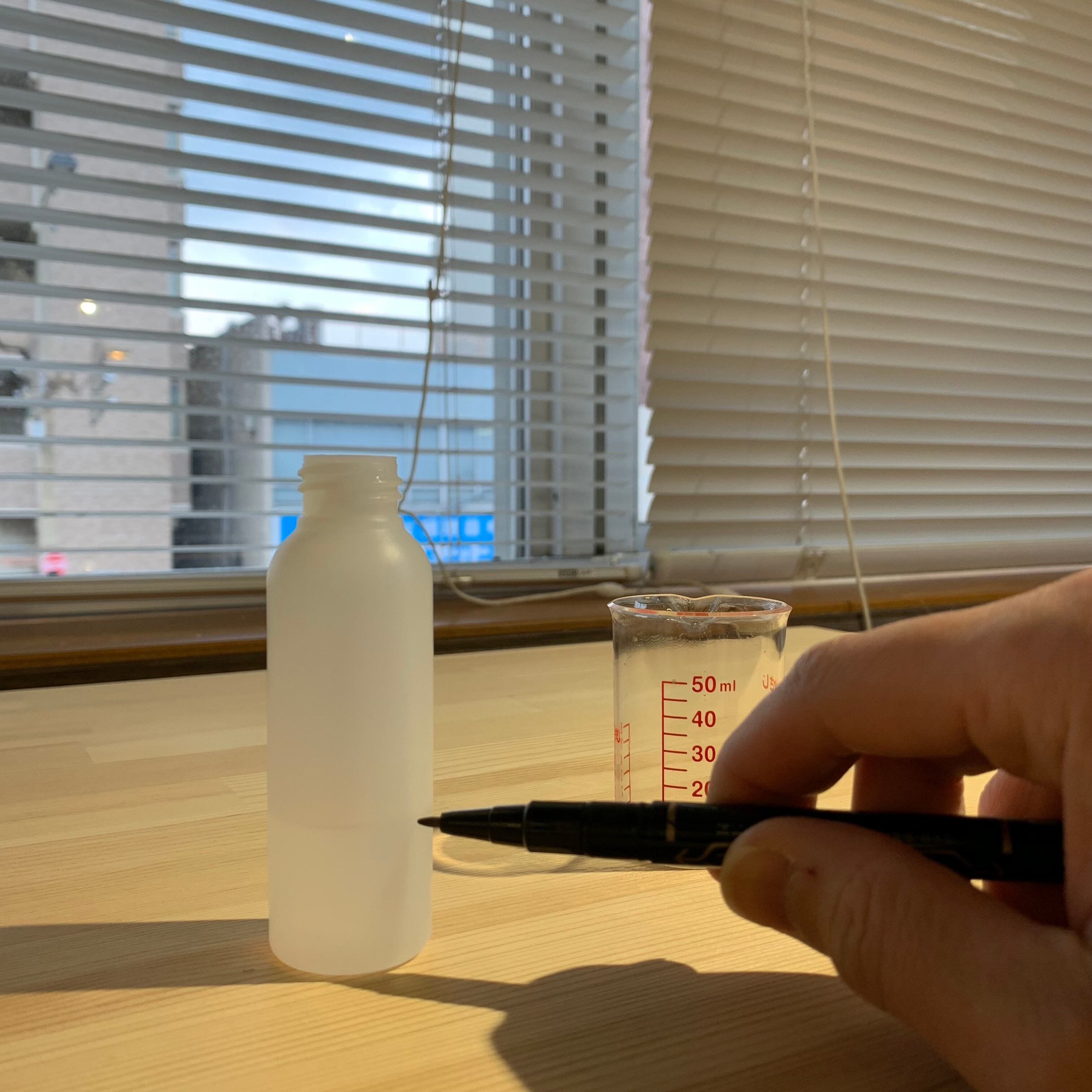 もう10ml加えて印をペンでつけて…