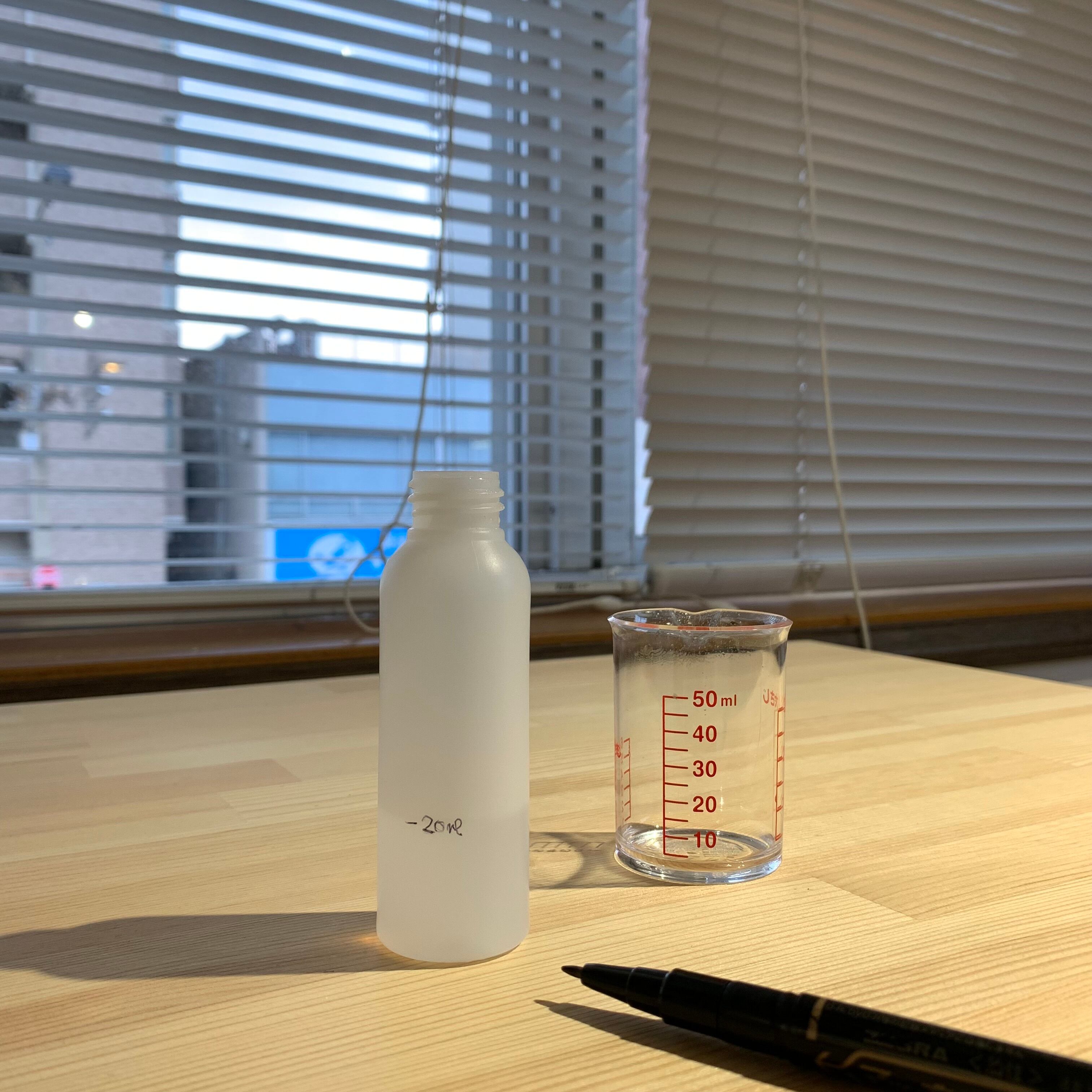 ボトルに10ml注いでペンで印をつけて、