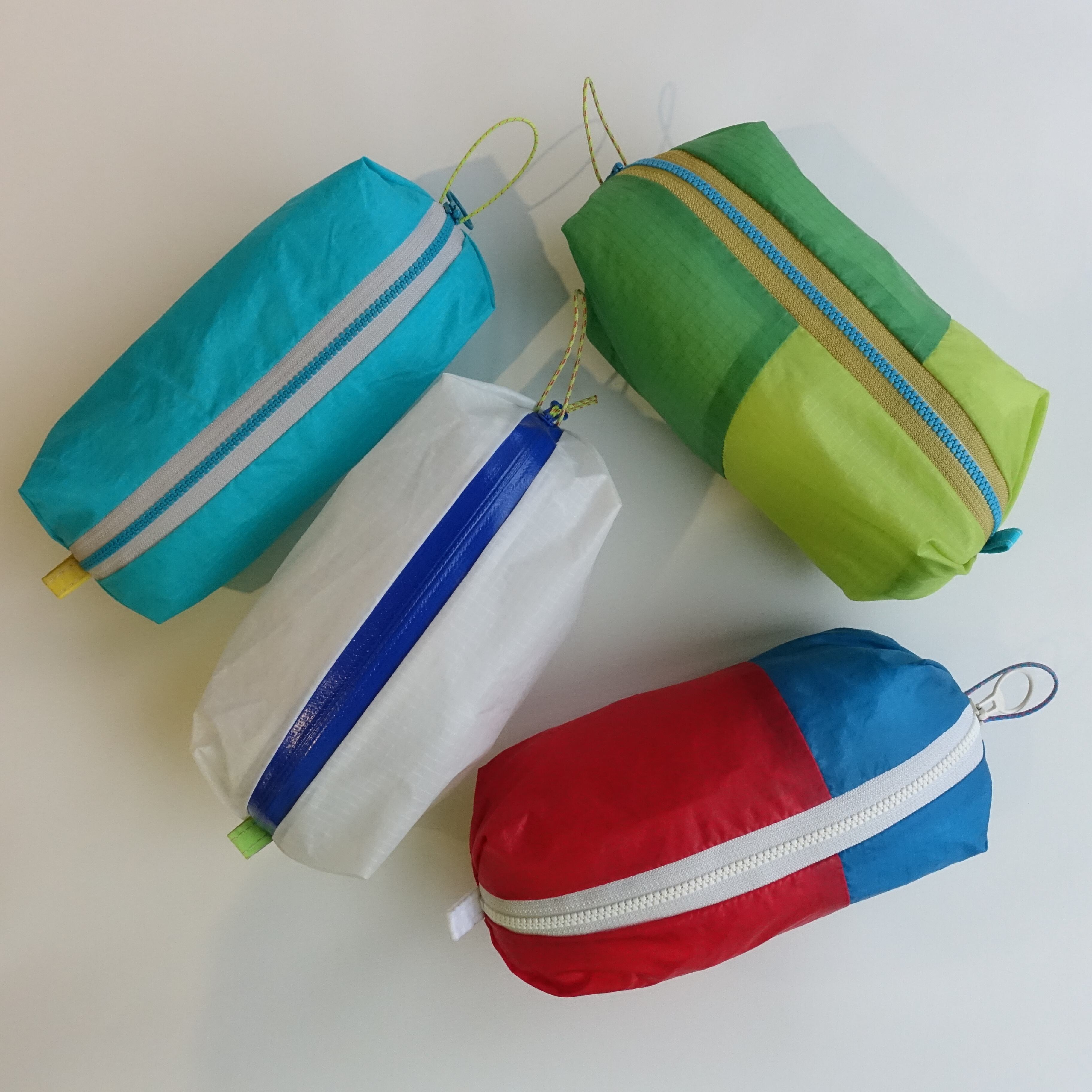 Upcycled products made from old paragliders.