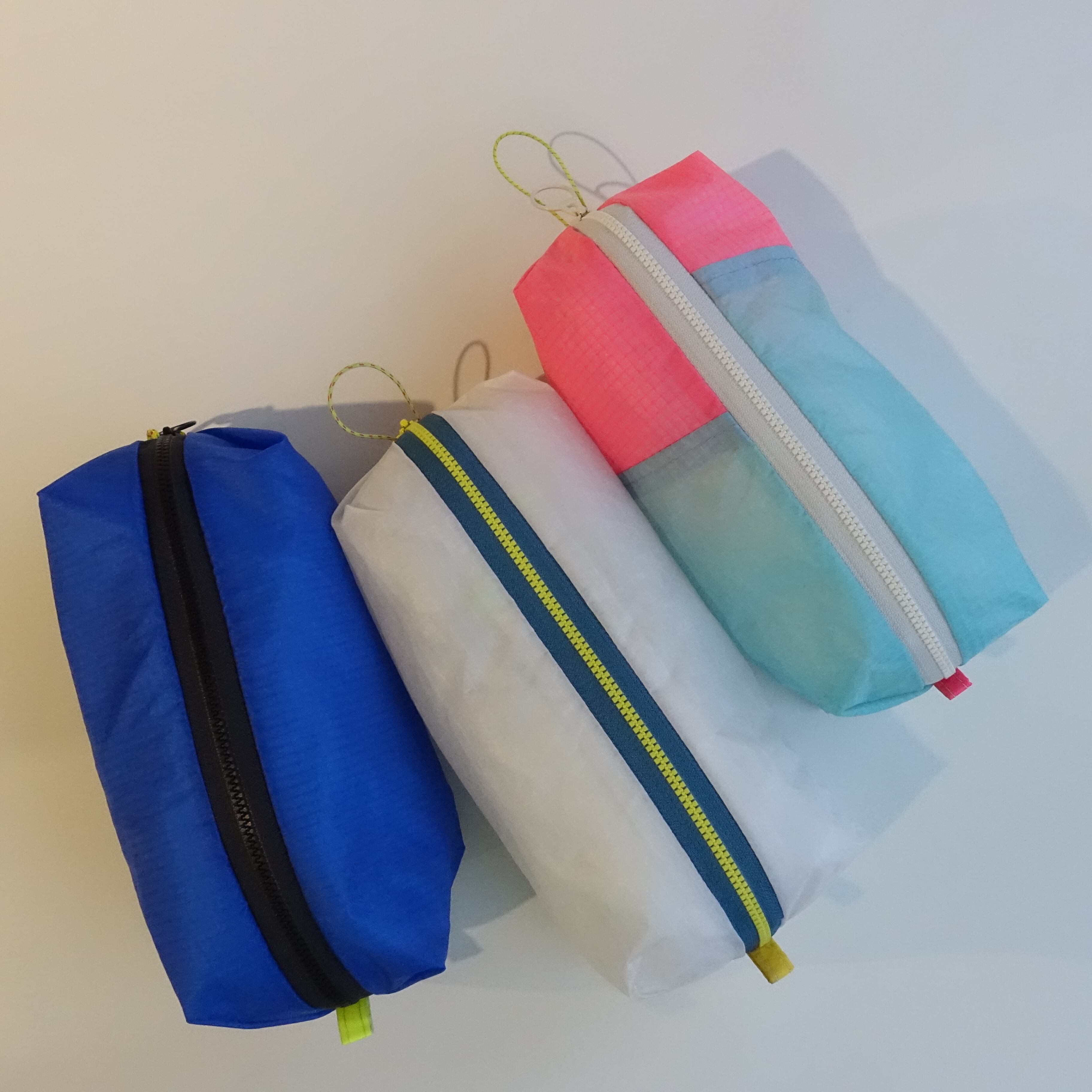 Upcycled products made from old paragliders.