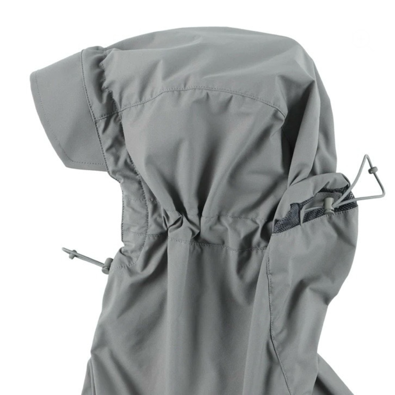 フードを被れば後ろに比翼のメッシュがあるので、